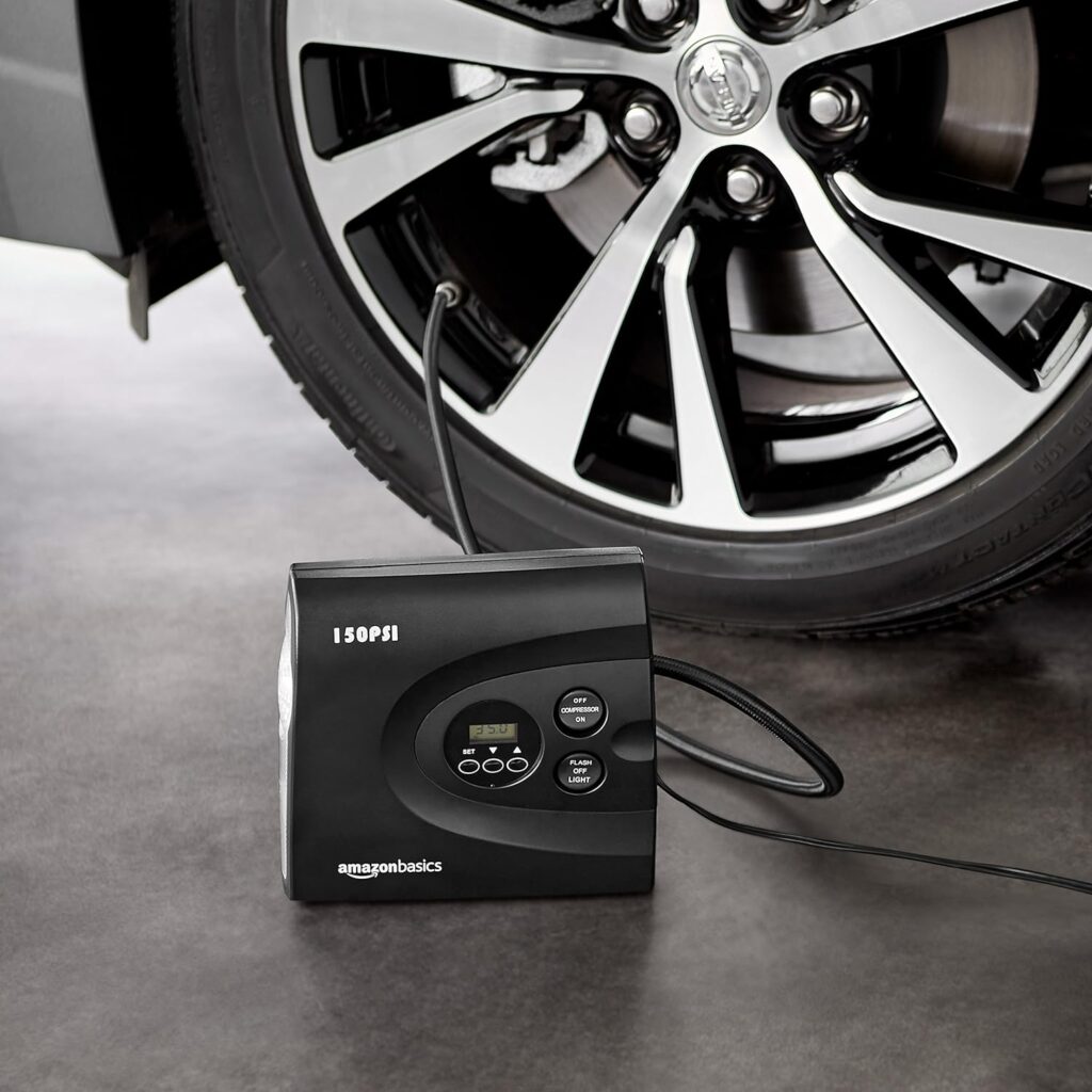 • Compact 12-volt portable tyre inflator for adding air to tyres; plugs into cigarette lighter port